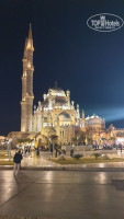 Территория отеля огромна. Просто гигантская. Ходят маршрутки, (таф-таф) номер 1-4. До 55 корпуса №4. Пальмы, цветущие кусты, травка, кактусы ит.п. и т. д. настоящий оазис в пустыне. Работа проведена огромная. Менеджмент отеля итальянский. В главном корпусе консульство Италии. Итальянцы - большинство туристов отеля, потом русские, украинцы, белорусы, казахи. Гостями были Берлускони, Мелони, Флавио Бриаторе (директор Формулы1) и др.