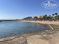 Пляж напротив через дорогу , на территории другого отеля. Можно пешком 15 минут прогулочным шагом или на автобусе 5 минут . На пляже отдельная зона для нашего отеля была, там же бар. Еды на пляже нет, только напитки такие же что и на территории своего отеля.