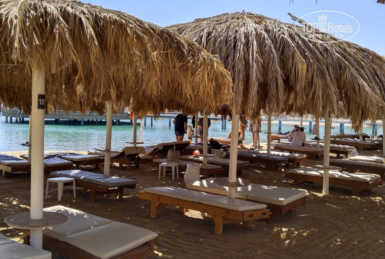 Пляж -плавный заход в море, очень интересно решена короткая пляжная линия, сделаны уходящие в море пирсы, очень красиво.