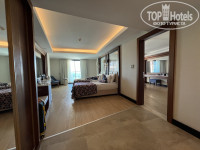 Заселение и номер: приехали в отель около 6 утра, сразу пошли на завтрак, основной завтрак начинается в 07:00, но до этого времени ресторан тоже работает, просто не делают глазунью, омлеты и тд. В 08:30 получили ключ от семейного двухкомнатного номера с частичным видом на море, но были разочарованы видом на пустырь и кусочком моря. При обращении на ресепшен без проблем учли пожелания и дали другой номер на 4 этаже (4080), номер просто шикарный по размерам, с отдельными комнатами, нет проходной комнаты, что очень удобно, на балкон выход из двух комнат, окна выходят частично на море, на соседний отель и на горы вдалеке. Спасибо большое сотрудникам за фактически идеальный номер (для нас). В номере есть все необходимое: тапки, чайник и чайные принадлежности, у нас было два мини бара(ежедневное пополнение вода газ:не газ, сладкая газировка, пиво, молочные коктейли, соломка), в ванной комнате кондиционер, шампунь для волос в маленьких пузырьках и мыло и средство 2в1 в дозаторах, так же зубные щетки, паста(небольшие тюбики), бритвенный станок, мочалка. Что еще порадовало- наличие косметички с символикой отеля, удобно было туда положить карточку от номера и мелкую необходимость.