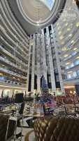 Хотя в моде давно другие тенденции, интерьер выглядит интересно, внимание привлекает огромная люстра в центральной части отеля.