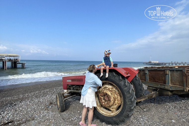 Пляж, огромные камни зайти с берега невозможно, детям очень больно взрослым в только в обуви . Купались с пирса , возле пирса вечно была какая-то жижа и муть все 11 дней. Море дети не видели так как были малыши и с пирса им страшно .