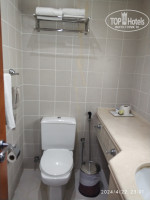 Санузел: есть фен, мыло, шампунь, лосьон для тела, туалетная бумага, но нет мыльницы, геля для душа и ершика для унитаза.