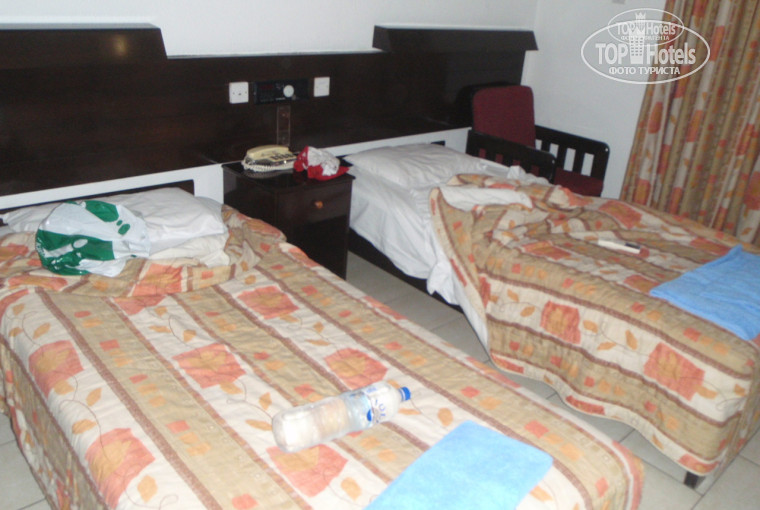 "Натали Турс" в аэропорту Ларнаки встретили, отвезли в отель минут за 15. Прибыли мы вечером,поэтому комнату дали сразу, без задержки. Зайдя в номер, подавив в себе "синдром перелетов", решив утром осмотреться, легли спать. Да, предварительно сходили за водой в минимаркет на соседнюю улицу, благо,он еще работал. Утро встретили в хорошем настроении.