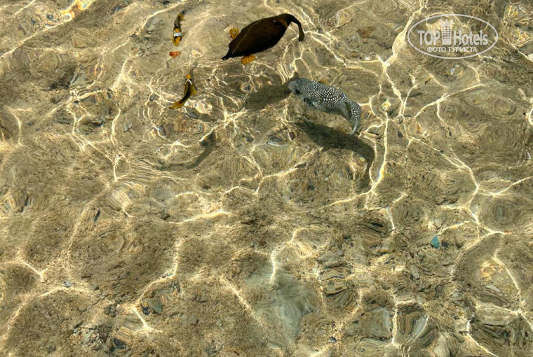 Еще один для кого то минус , а мне был хоть какой то фитнесс нагрузкой это прогулка по пирсу до нормальной глубины . Плюсом пирса считаю что есть остановочки и спуски и лежаки на разной глубине ( с детьми можно помельче, если они норм плавают можно чуть дальше, ну а если хотите смотреть рыбок то на самое дальнее.