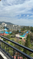 4. Анимация. Мы же все привыкли, что, приезжая в новый отель, к нам обязательно подойдёт аниматор и заведёт беседу? В данном отеле такого можете не бояться. За неделю никто к нам не подошёл, не позвал куда-то или просто не поболтал. Видели только одного аниматора, который проводил водное поло, дартс или бочу. При этом, всё остальное время он был предан одинокой русской туристке без мужа, попивая с ней кофе или чай в баре у бассейна. Чем уж было заслужено такое внимание нам неизвестно, но на всех таким образом аниматоров не хватит. Так же в отеле нет никакой стойки или стенда, где было бы указано расписание анимации/вечерних шоу. Узнаёте об этом только в 15:00 из уст диджея возле бассейна, как в программе "Время" по расписанию. Из 7 дней была только один раз дискотека у аквапарка с громкой музыкой, один раз живая музыка и все остальное время дешевые шоу в амфитеатре вместимость человек 50 (как должны уместиться все гости отеля в корне непонятно).