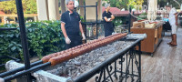 Дважды в наш заезд проводили турецкие вечера, вывешивали флаги, при входе встречали гостей приветственными коктейлями, а на мангале готовили какое-то необычное острое мясо, типа как у нас молотый шашлык, только длиной более метра.