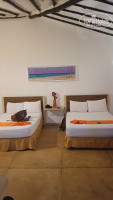 Жили в двух коттеджах.. В одном было две кровати на двоих.. Бельё чистое.. Мыльно рыльное пополняют .. За три дня так и не получилось помыться тёплой водой, душь на улице и вода как в море..)