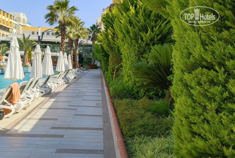 Мы приехали три взрослых, встретили наш тур оператор и быстро довёз до отеля. В отеле вежливо встретили , не заставили долго ждать. Дали ключи и расположили нас в один номер номер уютный вид с балкона смотрел на другой отель. С боку видно было море. Очень тихий и уютный вечера я проводила на балконе. На территорий отеля есть несколько видов ресторанов премиум Аля карта. Паста в итальянской кухне очень вкусные тают во рту. Основная столовая удивила разнообразными видами блюд , очень много разновидностей выпечки и сладости. Рай для сладкоежек в в отеле. Есть несколько чайных уголков где подают и вкусные кофе. И там тоже разные виды сладостей. У моря есть ресторан которые подают рыбные море продукты. Там очень вкусные шашлыки и мидии и креветки королевские. Бары заполнены разными видами напитков начиная с крепких горячительных напитков заканчивая айраном. Сделают на выбор любой коктейль. Есть ещё бар 18+ там очень вкусно подавали голубую лагуну. На территорий есть ещё большой бар очень вежливыми барменами. Так же много официантов которые подадут и уберут за каждым. Так же ходят администраторы которые постоянно подходят и уточняют все ли нас устраивает. Персонал очень профессионально относятся к своей работе. Все ухоженные и красивые и чистые и опрятные. Так же есть несколько видов бассейнов , есть лежаки по всей территории отеля. Есть ещё вечерний бар где подают самые лучшие коньяк Сивас и Хеннесси . Подают красиво с орехами и инжиром. Вообщем для меня как первооткрыватель Турции и курорта довольна всем. Рекомендую