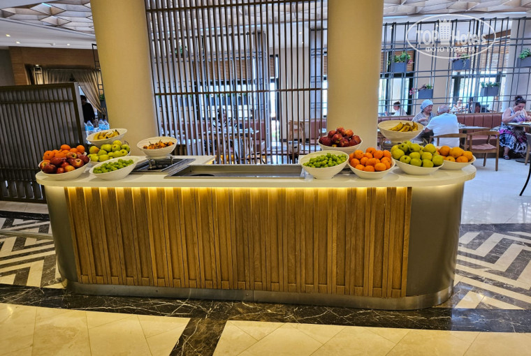 Самое главное разочарование-это питание. Конечно, голодные не остались, но выбор небольшой. Один вид рыбы на гриле(скумбрия или дорада), один вид мяса (курица или индейка). Фрукты-вообще беда. Дыни были раза три за все время, арбузы выносят не сразу , клубники нет, гранатов нет (в соседнем отеле на букву п той же ценовой категории все это было, как и разнообразие рыбы).