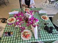 Завтраки: повторюсь «очень скромные», постоянно чего-то нет или заканчивается и не приносят сливочное масло, чай заканчивается в пакетиках (за исключением чёрного), помидоры, огурцы, качественный сыр и так далее. Первые два дня жарили по мимо блинов еще и пончики, но больше их не было. Ни разу не жарили баклажаны во фритюре, а только фалафель. Кофемашины в ресторане нет, только растворимый кофе из банки с общей ложкой. Продолжать можно до бесконечности, но моей супруге понравилась геркулесовая каша на воде. Натуральный кофе из кофе машины есть бесплатно в баре у ресепшен или за 1$, но уже другого качества, там же и мороженное за 2$, и платные кондитерские изделия, и фрукты. Утром при входе в ресторан предлагают за 2 доллара свежевыжатые соки.
