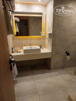 НОМЕР: нам повезло пожить в разных номерах. Сначала дали 2 соседних гигантских номера квадратов 150-200 в основном здании на 4м этаже, у меня квартира меньше. В нашем фэмили было 9 спальных мест, у друзей 5. Коридор с диваном и креслами, выходы в 2 комнаты и су. Вид на море. Шикарно, но очень уставшее. Ковролин ещё Ельцина застал.... реновация не добралась пока до этих номеров. Нам было без разницы, зато места много. Кондер работал отлично. Зеркало напротив унитаза - очень сомнительное дизайнерское решение :)