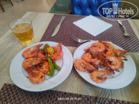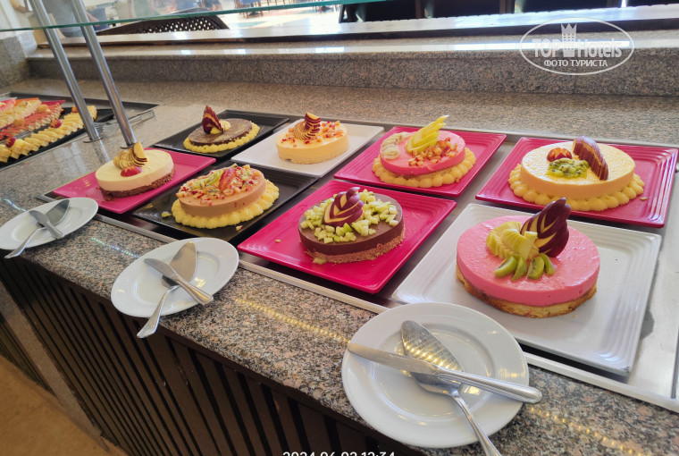 Еда - нашей семье все очень понравилось, в главном ресторане утром - вафли, круассаны, яичница, чай, кофе из кофемашины , каждый обед и ужин - гриль(говядина, утка, люля, курица, крабы, креветки), лепешки из печки, овощи, фрукты( дыня, апельсины, виноград редко. арбузы платно). Раздача мяса с гриля всегда сотрудником. Но если хочешь порцию побольше, либо просишь добавить , либо подходишь с двумя тарелками, в случае с креветками я так и делал. Из алкоголя брали - пиво, мохито, ром с колой - нам понравилось. Что ещё в плюс, так это бутилированная вода. Бутылки по 0.6. Также можно и на разлив брать. Это удобно. Мы с собой берем из Москвы фитнес - бутылку, с ней удобно.На пляже в баре были алкоголь и перекус(картофель фри, котлеты, люля, лепешки, пицца). Мороженое можно было взять только с 14 - до 16 в пляжном баре не ограничено по количеству (в картонных стаканчиках). Многие и на обед не ходили, оставались на перекус на пляже и дальше купаться. Весь персонал хочу похвалить как в ресторанах, барах, так и аниматоров , большие молодцы - стараются. Жара в мае была под 40 градусов днём, без кремов никуда. В основном здании на нулевом этаже есть спортзал, беговая дорожка, Смит, велотренажёр, гантели, скамья. Рядом с фитнесом есть бесплатный бильярд, два стола. Аля - карт ресторан, как нам сказал гид , можно выбрать только один. Но я выпросил два , так как у моей дочки двумя неделями ранее было ДР. Разрешили. Поздравили, спели песню, подарили торт. Мы ходили в Итальянский и Монгольский рестораны. В итальянский посоветовали из-за детей, там пицца, паста, то, что дети обычно любят. А монгольский - там морепродукты. Понравились, но они больше как кафе, под открытым небом, (вот в Long beach resort 4*были реально рестораны). В отеле разрешают забирать еду в номер из основного ресторана. Это и хорошо, и плохо , так как отдыхающие могли уронить , розлить в лифте или где угодно что-нибудь. Теперь о самом неприятном для всех отдыхающих, особенно с детьми - отравления. Очень многие в этом отеле отравились, и дети , и взрослые. На пляже много раз слышал , как рассказывали, что чей-то муж, ребенок и т.д. травились. И нашу семью это коснулось, дочь два дня рвало от всего, даже от воды. Причина не ясна, в аптеке при отеле говорят, что солнце жарит сильно. Но причина точно не только в солнце, я несколько случаев слышал, что точно не солнце виновато было и не бассейн. Возможно, плохо промытая посуда, овощи , фрукты, может что-то подпорченное. Хотя к качеству продуктов претензий нет, все свежее. Симптомы одни - либо рвота, либо диарея. Медикаменты в аптеках есть , все в районе от 2 до 7 долларов. Мы спрашивали на рецепшн в курсе ли они, что половина Пирамисы с отравлением , ответили, что да, с кем не бывает. Лучше дойти до аптеки, которая не на территории отеля, ценник в два раза ниже(идти 5 минут). И под конец нашего отдыха нам перенесли вылет на 4 часа позже. Мы попросили , чтоб нам продлили номер, так как мы уезжали из отеля только в 20 00 и с 12 00 не хотели "сидеть на чемоданах". За день до выезда нам сказали, что только платно и никаких бесплатных продлений, учитывая , что у нас двое маленьких детей, не предусмотрено. А в день выселения удивили ещё больше - говорят, что нет даже платного продления, потому что 100%заселение у Пирамисы. Тут мы начали с ними спорить и просить вышестоящего сотрудника. Поговорив с ним, сразу все нашлось и наш номер про