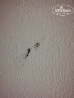 Когда мы вошли в номер, я подумала, что это камера пыток в застенках гестапо - все стены и потолок были в кровоподтеках от комаров. Там же придипли убитые насекомые. Я побежала на ресепшн. Они прислали уборщицу и часть пятен она оттерла, часть я оттирала сама. В отеле полно комаров, в нашем номере отсутствовала тюлевая занавеска, а раптор они не дают, советуют идти через дорогу и покупать за 5 евро.