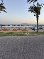 Пляж огромный. Мы всегда располагались на окраине пляжа в районе затонувшего города. В этом месте спокойно и свободные лежаки были всегда. Около бара шумно и занято все с раннего утра. Вход море хороший, можно без тапочек зайти. Каждый день плавали среди колонн и наблюдали за рыбками) Море шикарное, без волн. В конце мая-начале июня не очень теплое, но заходили без проблем. Красное море, конечно, очень красивое. За ним собственно в Египет и ехали.