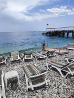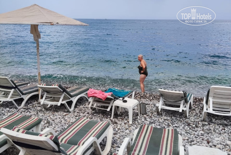 У отеля есть собственный пляж на 100 лежаков(с матрасами!), с всегда имеющимися свободными лежаками. Можно было за день даже поменять несколько раз лежак,прячась от назойливого солнца. На пляже стоит кофемашина,кулер с чаем,аппарат с напитками. Заселили нас на третьем этаже в отличный номер ,с кроватями с прекрасными матрасами . Номер без труда остужал брендовый кондиционер. Сам отель небольшой ,с 70-100 номерами . Территории,кроме бассейна,у отеля нет. Кому то это покажется минусом, но нас это совсем не напрягало. В баре наливали пиво, вино ,водку(крепкую) и местное виски. Конечно же была кофемашина и аппарат с напитками. Делали бесплатно алкагольные и безалкагольные коктейли. Хочу похвалить питание. Всегда было все настолько вкусно,что ты даже не задумывался, а какое там мясо?,курица или говядина.. Было множество салатов, всегда было несколько гарниров,на выбор несколько мясных блюд и рыба. На складкое давали пахлаву ,пирожные,халву,варенье на завтрак. Всегда давали арбуз, дыню,персики, яблоки. На завтрак готовили каждый день яичницу, или омлет с сосисками, или омлет с овощами. Готовили блины. Старший повар и его помощники всегда лично находились в зале во время приема пищи и следили за тем, чтобы всего всем хватало. В 3 минутах ходьбы располагались магазины Sok и А 101 . Там мы покупали местное мороженное Дондурма. Да , в отеле давали мороженное,но оно было не очень. Какая та замороженная водянистая масса.