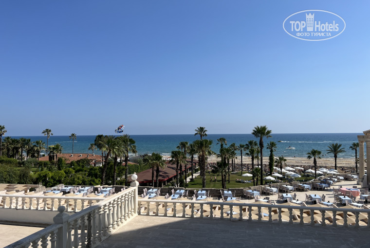 По прибытию в отель оказалось, что рекомендация от ТОП Хотелс никакой помощи не дает. При заселении казалось, что больше иностранцев, при убытии уже наших туристов стало больше. Номер бронировал стандартный, они идут с видом на землю. Из отзывов знал, что в отеле пытаются раскрутить туриста на дополнительную доплату и морально был к этому готов. Я попросил хорошие номера в корпусе 1, однако меня повели в корпус 2 и в самые дальние номера от моря. Это мне не подходило, сказал готов доплатить, но за хороший номер и с видом на море. В результате мы остановили свой выбор на номере 3005 и договорились в доплату 120 долларов. Так мы получили на две недели номер 45 метров, две большие кровати, два окна, два балкона (один на море, второй на соседний отель). Номер убирали хорошо, но когда оставляешь доллар, убирали еще лучше.