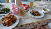 Еда: мясо-курица, попали на байрам, был барашек несколько дней. Фрукты-только арбуз, иногда кислый, иногда и его не было. В принципе, если не особо привередливы, голодные не останетесь. Когда отель заполнен, появляются очереди.