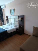 Номер прекрасный, большой, все новое. В номере есть холодильник, посуда, фен полотенца для номера и для пляжа. На этаже кулер, гладильная доска с утюгом.