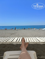 На пляж трансфер каждые полчаса. На пляже лежаки, навесы, переодевалки бесплатно. Море чистое, пляж широкий, народу было немного. Меня езда до пляжа не напрягала, но мужу не нравилось. Тесно, жарко, неудобно.