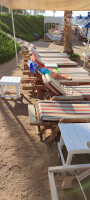 Пляж для отдыха с зонтиками и навесами – приемлем для не взыскательных любителей полежать на пляже. Ну и не 5*, может быть из-за этого. Деревянные лежаки напоминают морские пляжи СССР!)) Да и расположены довольно плотно. Для любителей подольше поспать найти место под солнцем)) немного проблематично. Но если располагаться чуть дальше от пирса, место всегда можно найти. Имеется простенький бар с обычными напитками и приготовлением т.н. шавермы и хот-догов.