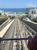 7. Территория небольшая но красивая и зеленая. Внизу бассейны с морской водой, наверху - обычный но 18+ и со своим баром. Водопад имеется, работает не всегда. Фонтан возле ресторана пересох. Но это мелочи, территория зеленая и нам понравилась. Все таки прошлое в составе сети Hilton не проходит бесследно. Интернет отличный на всей территории отеля, даже на пляже. Из минусов - работа фуникулера. Лифтов нет, перепад высоты приличный, в жару идти наверх по лабиринтам ступеней целое испытание, а из двух имеющихся кабинок фуникулера работает одна, вторая встала судя по всему навсегда, ибо полностью разобрана. Работающая кабина постоянно ломалась, люди стоят ждут... в общем как-то так.