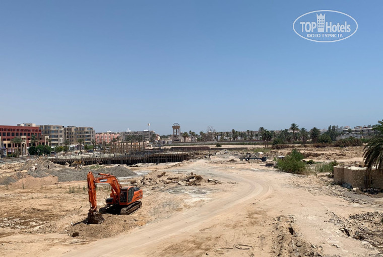Вид из номера на стройку, вдалеке немного видно море, первые 4 дня стройка не беспокоила, но потом они нагнали технику. Рабочий день начинается рано утром, и к 7 утра стройка пылила во всю, слышно очень хорошо.