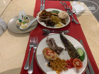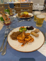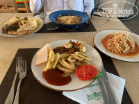 Шведский стол в одном большом ресторане на 2м этаже главного корпуса. Также можно пообедать в ресторане рядом с бассейном (там фаст-фуд, пицца, бургеры). В главном ресторане если прийти через пол часа от начала, то можно не найти свободного места. Еды много, по большей части блюда вкусные (особенно мясо на гриле), но изо дня в день блюда почти не меняются и к 5 дню уже начало поднадоедать, особенно завтраки.