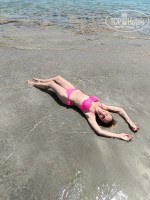 Пляж отличный. Много лежаков с зонтиками.Чисто. Постоянно поддерживают порядок работники на пляже. Заход в море с понтона. Я переживала, что понтон будет очень длинным и большая глубина. Но все оказалось просто замечательно.Короткий, заход хороший плавный. На дне песок и тапочки не обязательны.Но большинство ходили в специальной обуви. Мы купались утром, пока вода прохладная и прилив. И народу меньше. Днем вода сильно нагревается, купаться можно но это менее приятно.Бар на пляже работает с 10.00