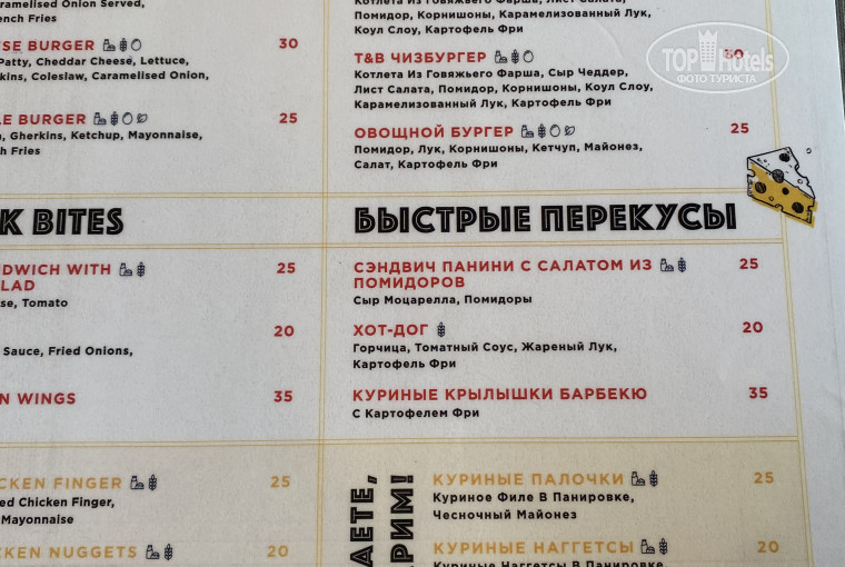 Бургерная( закусочная) , сейчас работает в двух местах. Возле аквапарка уличная( взять с собой) , где рестораны Аля карт там крытая. Работает дл 18:00. Вкусные хот доги, бургеры, крылышки👌🏻