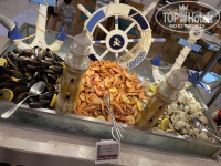 Каждый день обязательно что то из морепродуктов есть, в том или ином виде. На рыбный день и на день рыбы и мяса, вообще огромный выбор. И креветки и осьминоги и гребешки.