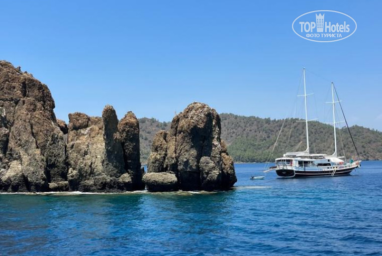Отзывы пишу крайне редко, но по этому отелю нет однозначного мнения. В Турции не была 14 лет и, возможно, это тонкости именно бюджетного, турецкого отдыха. Очень удивило, что при позднем заезде прибывшим туристам не предложили ужин. Столкнулась с этим впервые. Номер дали на 5 этаже, это, по сути, чердак, где очень жарко и душно. Нужно было сразу попросить замену номера, но ночью было уже не до этого да и все "прелести" прочувствовала позже. Кондиционер работал круглосуточно, соответственно, от него не очень приятный запах и установлен крайне неудачно-направление воздуха на кровати. Ночью включала/выключала, чтобы не простыть. Поэтому, если есть возможность, просите при заселении не 5 этаж. Об отсутствии своего пляжа у отеля я знала, но не думала, что это доставит такой дискомфорт, так как столкнулась с этим тоже впервые. Вариант-брать лежаки на пляже за напитки у кафе, но если уйдешь, то место теряешь, либо без лежака, на песочке, не на самом лучшем участке пляжа. Пляжные полотенца в отеле не выдают, даже если ты отдыхаешь у бассейна, на своей территории (только платный депозит). Так-же в номере нет утюга и гладильной доски, мы брали свой маленький, дорожный утюг, так как не набегаешься гладить в прачечную. При этом в отеле достаточно плюсов, чтобы осталось хорошее впечатление. В отеле работает очень клиентоориентированный персонал, сервис на высоком уровне. Русскоговорящие девушки на рецепшене помогут в любом вопросе, все сотрудники приветливы и доброжелательны. Отдельно отмечу чистоту, так как лично для меня это главный пункт в выборе места отдыха. В номере убирали хорошо, полотенца меняли постоянно, пару раз постельное белье. Средства гигиены пополнялись своевременно. В самом отеле тоже чистота, сотрудники постоянно что-то убирают, моют... Неоднократно наблюдала, как из бассейнов берут пробы воды. Вода, кстати, в них чистейшая. Питание вкусное и разнообразное. Всегда есть рыба, несколько видов мяса, много овощей, сыры, сладости. Фруктов мало, но арбузы вкусные. Голодными точно никто не останется. В баре местные, алкогольные напитки, неплохое шампанское. Анимации нет, но нам это и нужно было. Отель больше рассчитан на спокойный отдых для взрослых, небольшое количество детей дискомфорт не составляло. Территория небольшая, при этом есть детский бассейн, взрослый и небольшой у водных горок. Горки хорошие, катаются даже взрослые. Расположение отеля удобное. Рядом остановка, супермаркет Migros (все покупали в нем), до пляжа 5 мин. Красивая набережная: если идти налево, то за 40 мин. дойдешь до центра, старого города, рынка, если направо-поселок Ичмелер. Съездили туда на маршрутке-30 лир, обратно по набережной пешком-1 час. Море в Ичмелере чистейшее, много зелени, сосны, цветы, красивые виды. Недалеко от отеля аквапарк Atlantis, очень простой, горки примитивные и их мало. Кому не с чем сравнить, возможно, понравится. Ездили на экскурсию по Эгейским островам, понравилось, одна из лучших морских прогулок. Позже пожалели, что еще не взяли экскурсию в Каш, но в этот период было очень жарко и ни куда, кроме моря и бассейна не хотелось. Не ожидали в Турции такой жары и влажности (днем +40+45, ночью +35+38), ехали, чтобы много гулять и ездить по окрестностям, поэтому и отель взяли бюджетный, сидеть в нем не собирались, а получилось, что много из запланированного не реализовали. Так-же х