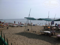 Пляж расположен на первой береговой линии, между пляжем и отелем подземный переход. Пляж галечно-песочный. На пляже имеется бар, где предлагается пиво, безалкогольные напитки, снеки. Море чистое. Вход в море – галька.