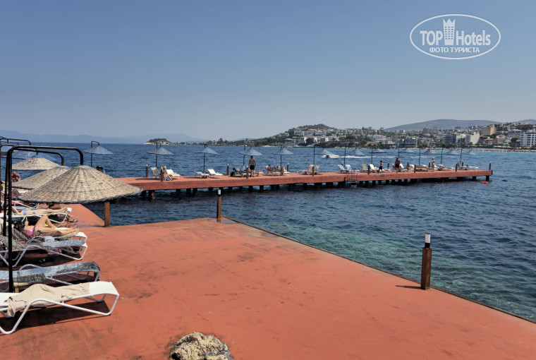 Территория отеля находится прямо на берегу, есть небольшой пляж (бухта) с песчаным входом и отдельный пирс с лежаками. Места нужно занимать с утра, до 8 утра. Есть 2 бассейна, детский пошумнее и взрослый для любителей тишины, расположены в разных частях отеля. Территория зеленая и ухоженная. К питанию претензий нет, вкусно, разнообразно и в нужных количествах. Также предлагают снеки и мороженое. Выбирали номер с видом на море, какой и получили на 5 этаже с видом на море. Проблем при заселении не возникло. Мебель в номерах немного уставшая, уборка ежедневная с заменой полотенец и раз в 3 дня с заменой постельного белья. недалеко от отеля находится небольшая улица с магазинами и набережная для прогулок (Ladies Beach). В 150 метрах от отеля останавливается маршрутка до центра города (стоимость - 19 лир).