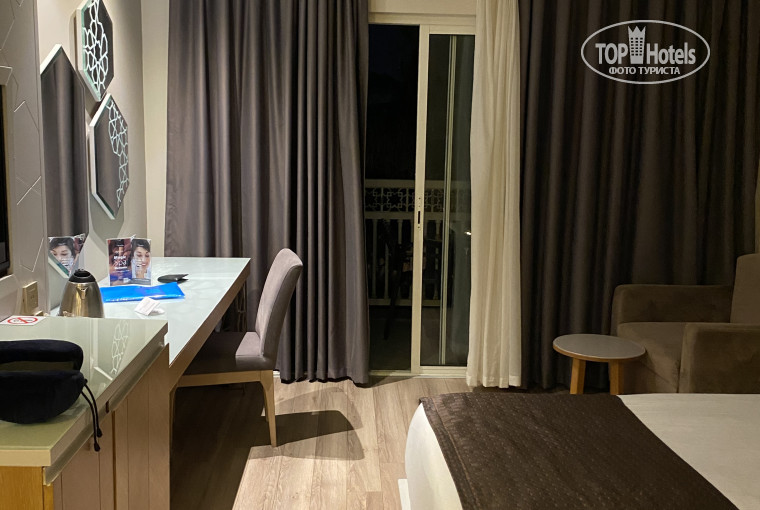 Отель понравился! Заселили быстро, территория большая, все ухожено. Рестораны и кухня на 5 👍 много фруктов полно свежих овощей , мясо всех видов , осьминоги , креветки , мидии, раки несколько раз в неделю. Десертов как и везде в Турции большой выбор. Пляж песочный , вход песок справа от пирса. Номер 5501 с шикарным видом 👍 из минусов: очень мягкие матрасы , для людей с больной спиной будет не комфортно!!! Персонал молодцы! Девчонки официантки в ресторанах просто молодцы , быстро обслуживают и всегда подходят 👍👍👍 спасибо персоналу ресторанов!!! А персонал на улице (парни у бассейнов) не убирают столики у лежаков мусор.