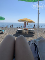 Есть свой пляж, возят в малеком автобусе, ехать всего 5 минут, но в нем невыносимо жарко. На пляже вай фая нет. Море класс. Лежаки есть.
