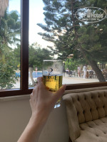 На баре пиво, вино, кола, фанта и спрайт и газированная вода. Крепкого не было. Наливали без проблем за 10 минут до конца работы бара по несколько стаканов сразу ) у бассейна напитки наливали в пластиковые стаканы, если не у басика то в стекло.
