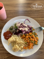 Еда обычная, курица, овощи, макароны. Всегда были сытые.