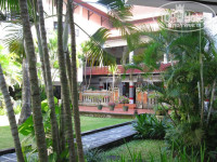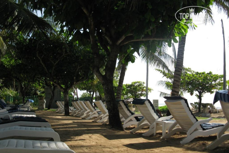 Об отеле. Отель небольшой, неплохой (по критерию цена-качество), чистый, уютный. Находится в местечке Танжунг Беноа, а вся туристическая жизнь проходит в Нуса Дуа. Но в Нуса Дуа постоянно курсирует бесплатный автобус, нужно только взять расписание. Действует по системе все включено. У нас были только завтраки (довольно приличные, но однообразные; очень вкусная выпечка, большое разнообразие фруктов: папайя, ананасы, арбузы, дыни, апельсины…). Оговорюсь сразу, что лучше брать полупансион (ужин), т.к. темнеет там очень рано, уже в 7-8 часов темень кромешная, не погуляешь. Отель имеет общую территорию с Гранд Бали Мираж (можно пользоваться пляжем, бассейном, а также пройти какую-нибудь процедуру в Spa центре с 10% скидкой). Номер у нас был на первом этаже с видом на бассейн и море. В номере есть все, что пишут в проспектах. Персонал приветливый, неназойливый, корректный, что нельзя сказать про население. Т.к. на Бали береговая территория считается свободной для всего местного населения, там вы ощутите все прелести балийского предпринимательства. Поэтому все отдыхающие, а это в основном иностранцы, предпочитают находиться на территории отеля. По побережью ходят женщины, делающие массаж. Говорю за себя – я брезгую… очень… очень…. Это делается в каких то самовыстроенных «шалашиках», непонятно какими средствами, руками, и непонятно на каких досках, которые даже ничем не покрывают. Лучше делать массаж при отеле. Мы взяли комплекс из 7 процедур (там все расписано по-русски) на 5-6 часов в Талассо Спа при Гранд Мираже. Стоило это 160-170долларов на человека. Это РАЙ. Только ради этого можно лететь на Бали. Отдельно про море (Индийский океан). Приливы и отливы постоянны. В один день выходишь, море - полная чаша, в другой день, в это же время - лужица. Но это еще не все. Очень много местных лодок и катеров. Запах горючки, дыма постоянен. Поэтому мы уходили на территорию Гранд Мираж. В отливы вода может уходить до самого рифа, можно бродить по дну и увидеть морских ежей, звезд, маленьких рыбешек. На дне много травы, иногда она очень высокая и колючая - это неприятно. Медузы тоже бывали и даже маленькие красненькие, которые жгутся. Лучшие пляжи находятся на территории Нуса Дуа в районе отеля Лагуна. На Бали туристы могут проходить и отдыхать на территории всех отелей, чем мы и пользовались. Отель Лагуна произвел сильное впечатление и своей красивейшей территорией, чистотой океана, белым песком.
