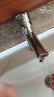 У бассейна есть туалетная комната, в котором ручка смесителя упирается в доску, не открывая полностью воду.