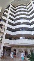 В отель мы приехали рано утром в 7-00. Нам одели браслеты и отправили на завтрак. Позже когда мы подошли на ресепшн нам сказали что наш номер не готов, но за дополнительную плату нас могут заселить быстро с частичным видом на море. Хотя на кануне был большой выезд, как нам сказали позже отдыхающие, у них это практика разводить на деньги вновь прибывших. Мы отказались от доплаты, переоделись в СПА салоне и пошли на море. В 14-00 мы подошли для заселения на ресепшн и попросили номер повыше, нам без дополнительной доплаты дали ключи от номера 865 на 8 этаже. Номер просторный, вид на горы, внизу центральный вход и заезд в отель. Шума от выходящих соседей не было, может потому что и соседей было маловато. Номера в отеле действительно старенькие, но абсолютно всё работало, с водой ни разу проблем не было, матрасы удобные, постельное белье и полотенца белоснежные (смена полотенец каждый день, постельное меняли один раз за неделю), бар пополняли ежедневно, YouTube на телевизоре работал без зависаний, хороший сигнал Wi-Fi в номере (роумингом даже не пользовались, разговаривали и выходили в интернет без проблем через Wi-Fi и из номера, и с пляжа, и из ресторанов). Море чистое, видно дно даже отплывая далеко от берега. Мы рано утром приходили на берег и встречали восход солнца над морем, делали утренний заплыв до буйков, а потом шли на завтрак. Мы отдыхали в основном справа от пирса, там вход показался приятнее, так как в первый день мы купались слева от пирса и без обуви не могли зайти в воду. Лежаки на пляже свободные были всегда в течение дня. Полотенце в СПА салоне меняют только один раз в день, утром берешь, а вечером сдаешь, мы этим были очень удивлены. Питание отличное, разнообразное всегда есть рыба нескольких сортов, баранина, индейка курятина, говядина, на улице в основном ресторане готовят блюда на огне, но иногда пережаривают рыбу и мясо, поэтому мы еду брали в самом ресторане. В рыбный день были крабы, раки, креветки, мидии, роллы. Официанты очень стараются: быстро убирают посуду, приносят по заказу напитки, вытирают столы, раскладывают приборы. Столы свободные можно найти всегда. Территория небольшая, но зеленая, ухаживают за ней каждый день, гранатовые и бергамотовые деревья радуют своими плодами. По территории свободно гуляют кошки, котята, кролики, куры, петухи, фазаны. Отель больше подходит для отдыха семейных пар, для молодежи будет здесь скучновато. В целом наша семья очень довольна отдыхом и мы получили именно то, что ожидали и даже больше. Спасибо большое всем сотрудникам отеля “Ma biche Kemer”.