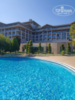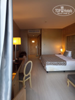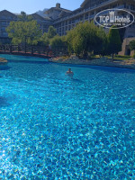 И так... Зайдя в отель все сразу начало нравится. Все вежливые, улыбаются, разговаривают на русском. Красивый холл. Так как в отель мы приехали ровно 14.00 сразу потопали в номер. И вот зайдя в номер ... сразу захотелось выйти обратно. Номер показался просто ужасным. На фото наверное будет видно. Мебель все обшарпанная, кровать чем то облита, полы елочкой, ванная комната тоже требует ремонта... Номер менять не стали, было не до этого. Ну а потом глаза привыкли. Это наверное большой минус. Ну а дальше все отлично. Переоделись пошли покушать. Баров и ресторанов очень много по всей территории. Сама территория очень большая, зеленая. Бассейны большие, всегда есть свободные места. Море.. Море просто восторг. Да, камни, но нам очень понравилось. На основном пляже песок. Заход в море мелкая галька, есть лестница для захода. Есть два больших пирса. Мы на пирсах отдыхали. Возле пирса заход метра 1,5-2 мелкая галька дальше большие камни. Море чистое, прозрачное. На пирсе холодильник с напитками (вода, пиво, газировка...). Тоже всегда находили свободные места. Аквапарк нормальный. Кстати возле него тоже пляж не большой и снек бар. Основной ресторан огромный. Несколько отдельных ресторанчиков , каждый со своим названием. На улице тоже большая территория для столиков. Аж в двух местах. Еды очень много. Каждый найдет на свой вкус. Мясо разное курица, индейка, говядина. Всегда была рыба. Супчики не только пюре но и бульончик. Алкоголь сносный. Мы больше вино пили, нормальное. Вино красное, белое и розовое. Пиво в бутылках 4-х видов ( Эфес, Миллер и еще какие то 2). Коктейли особо не люблю. Не которые жаловались, что все на один вкус. Возможно. Что еще то.. А кстати в первый день принесли в номер вино и фрукты. Приятный сюрприз. Полотенце в номере меняли каждый день и мусор выкидывали, а вот пепельницу убрали один раз, потом сами выкидывали. Полы похоже вообще не мыли и кровати не пере застилали. Были в других отелях там по другому конечно было. Не понравилось конечно, что много детей, ещё и плачущих за стенкой всю ночь. Слышимость хорошая. Как то надо с маленькими детьми заселять на отдельном этаже от взрослых семейных пар. В общем не плохой отель, побывать там надо. Все равно смогли отлично отдохнуть. Впечатлений много. Правда не успели везде побывать и все попробовать.