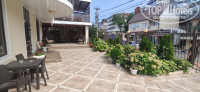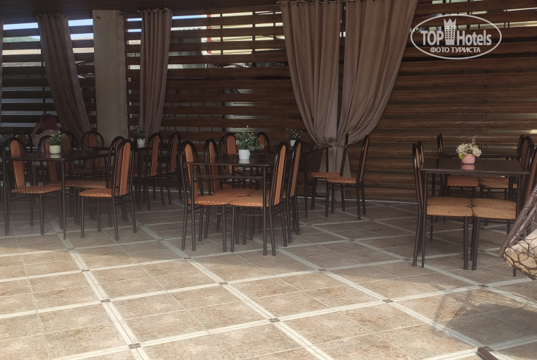 Номера стандартные, небольшие с балкончиками. У нас был разложенный диван и двуспальная кровать. Телевизор, кондиционер были в номере. Чайника не было, но у Лены, хозяйки, принцип - есть большая летняя кухня, есть терраса. На кухне вся посуда, куча места, мангал - ешьте там, в номере не нужно. Может, и правильно.