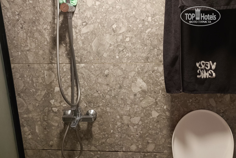В номере, в который нас поселили ,для размещения всех вещей предоставлена балка, длиной 50 см , на которой болтались 4 вешалки. рядом с холодильником(вплотную) с чайником и душевой кабиной совмещённой с унитазом!!!! Да, да с унитазом. Унитаз стоит в душевой кабине, после того как принимаешь душ , пол покрыт водой , а так как все кривое , то под унитазом лужа! Постоянно. Унитаз тоже сам течет.