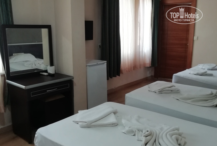 Этот отель мною был выбран исходя из бюджета и отзывов об отеле. По приезду, нас заселили в номер 504,который находится в корпусе В,слева от лобби отеля. Номер этот из серии эконом, был темный,старый, к нам в номер выходило окно из туалета и ванной соседнего номера. В номере 1 двухспальная кровать,холодильник,шкаф,1 тумбочка и стол с зеркалом.Номер нам не понравился уже из-за того,что там была одна кровать,а мы хоть и подруги,но не хотели спать на одной кровати.Также в этом номере не было горячей воды после 17 часов,да вообще ее нужно было сливать долго.Нам пообещали сменить номер послезавтра. На завтра, пришел управляющий Иса и предложил моей подруге выпить коньячка в баре,она отказала. Я предположила,что номер мы не увидем. И на другой день этот Иса сказал,что свободного номера с 2 раздельными кроватями нет,хотя мы видели,что народ уезжал.Я написала о проблеме своему турагенту,она похлопотала и мне позвонил представитель принимающей стороны и узнал о проблемах.В этом номере была еще одна проблема-ночью включили что-то гудящее, что не давало нам спать.Плюс номера только в том,что там ловил вайфай.
