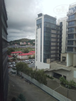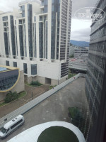 Коротко про отель. Разместили нас быстро, в главном холле отеля 5 лифтов, 3 для проживающих, 2 для персонала, лифты ходят медленно, что не очень комфортно, есть ещё лифт на подземную парковку, но им мы не пользовались. Номера средних размеров, минимальный набор мебели и посуды имеется. Сначала мне выделили номер 514, с видом на трассы и дорогу, но я быстро сориентировался и попросил номер во двор, так как там реально потише, за что отдельное спасибо администраторам на рецепшен! В номере есть холодильник, ТВ, большие панорамные окна, шторы достаточно хорошо затемняют свет, интернет нормальный, в ванной комнате кроме мыла не было ничего, так что пенно-мыльные принадлежности сюда надо брать по полной программе. От отеля до центра Адлера минут 10 ехать на такси, до пляжа, вроде ходит трансфер. магазинов рядом замечено не было. Отель рекомендую для командировочных, остальным, для отдыха, наверное лучше поискать отель у моря и променада. Всем хорошего отдыха!