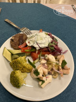 Типа морской ужин был: из горячего овощное рагу с кальмарами и мидиями, салат с мидиями, анчоусы и еще какая то белая рыба в нарезке