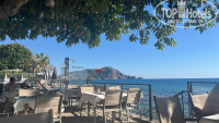 У отеля неповторимая, удивительная атмосфера: полного уединения с морем. Он находится на первой линии. То есть выходишь из номера - и ты сразу на море: нет никаких ни променадов, ни дорог, ни подземных переходов. Достаточно солидная часть пляжа Клеопатра у отеля своя, посторонних людей там не бывает. Так как Floria Beach очень удачно расположена - на самом въезде в Аланью - рядом нет других отелей. При этом до центра города идти пешком всего минут 30, автобусная остановка находится в нескольких метрах от отеля.