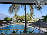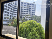 Отельный гид смог переселить нас в номер на другой стороне от стройки с видом на крыши бунгало и пальмы, в целом получше. Номер с двумя кроватями.