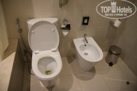 Еще, конечно, отели 5* отличают сервис и питание, даже если сам отель уже "уставший". Но это тоже не про "здесь". Отель старый - это все знают. Мы жили на одной из вилл, которые стоят после трех основных корпусов, далеко от столовки. Номер 2 Bedroom Suite with Sea View & Balcony. Из названия понятно, что в нём две спальни, гостиная и балкон. В нашем случае оказалась терраса, так как номер был на первом этаже. И хотя мы к этому привыкли потом и даже нашли какие-то плюсы от первого этажа, изначально я бронировал номер на верхнем этаже. Не дали. К кому претензия - не знаю. То ли оператор не передал информацию, то ли в отеле плевать на нее хотели. Минус этого номера - одна ванная комната, к тому же, совмещенная с санузлом. Такие сьюты предназначены для семей с несколькими детьми, одной ванной маловато будет. Особенно, когда она занята и в туалет тоже никому не попасть. Хоть бы душ добавили. Или туалет бы сделали отдельным. Вода течет плохо: в душе почти холодная, в кранах напор слабый. Шумоизоляция окон со стороны дороги "никакая". Двери скрипят, кондиционер шумит, шторы оборванные, двери шкафа рассохлись и перекосились, открываются и закрываются с усилием. В мастер-спальне я насчитал 8 (!) розеток возле кроватей и по стенам, но ни одной европейской или универсальной, кроме двух на столе, одна из которых не работала, а от второй питалась настольная лампа. А в магазине при отеле продают адаптеры для розеток по 53 аеда (1500 рублей) за штуку - вот такой бизнес. Халатов в номере нет. Попросить можно, вроде бы, но мы не стали - гордые. Вообще, в "пятерке" халаты должны по умолчанию в номере висеть, других вариантов до этого я не встречал. В телевизорах три русских канала, включая СТС и есть еще арабский RT, его тоже любопытно посмотреть бывает. В ванной нет чашек под зубные щетки. Мелочь, а неприятно. Куда хочешь, туда и складывай свои щетки. Прекрасный и мощный запах канализации по утрам на выходе из виллы довершают картину. Этакие ежедневные "сливы" перед завтраком. Наверное нам просто с виллой не повезло... Ну а фото рваных, драных и прожжённых сидений в общественных местах и без меня уже выложили достаточно, не стану повторяться.